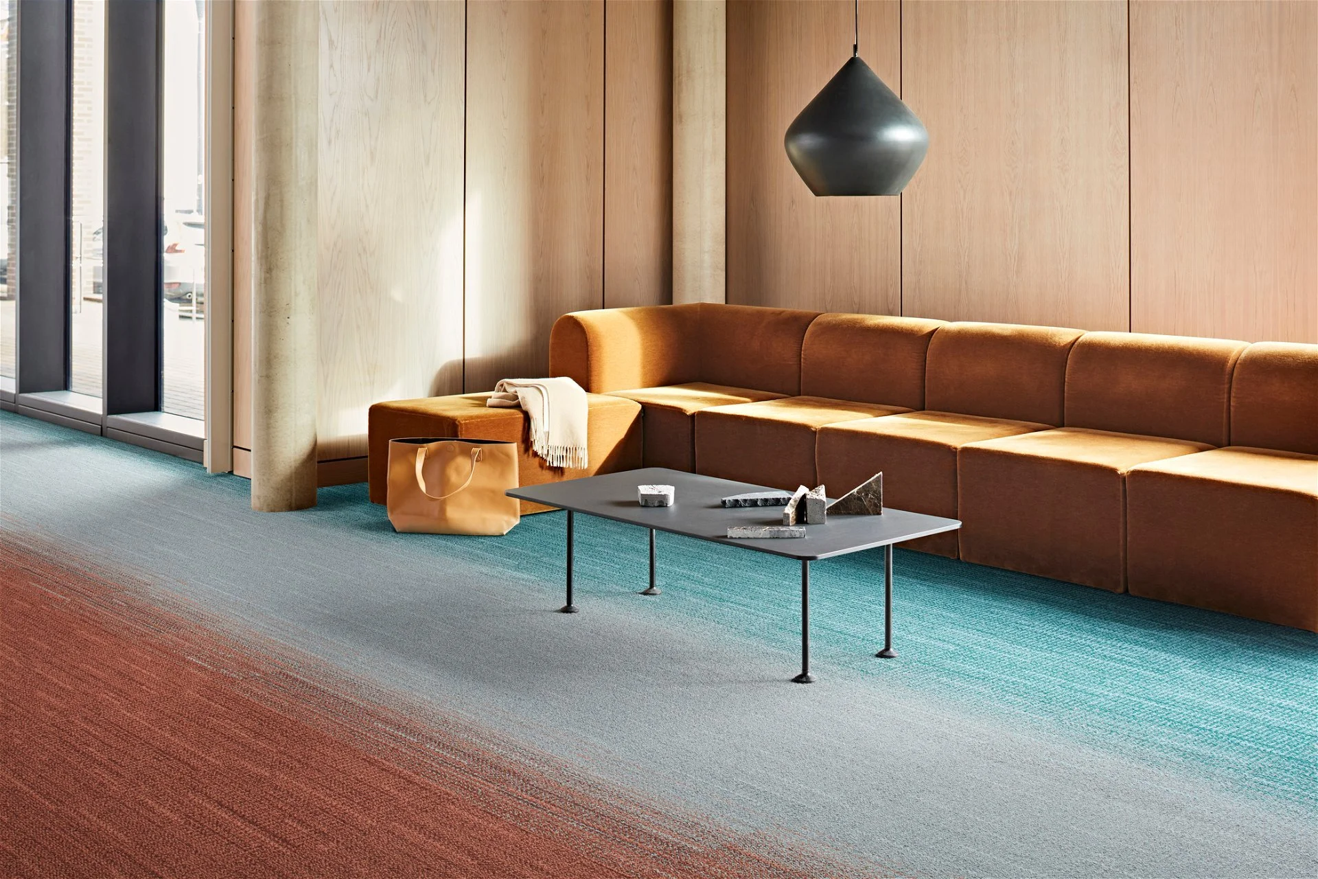 Flagship products: Modular carpet tiles, luxury vinyl tiles (LVT), and nora® rubber flooring, all designed with a focus on sustainability and circularity.